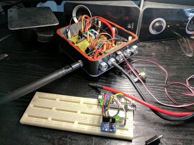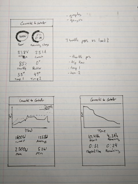 An Android app seemed like the most logical method of viewing telemetry and controlling the kayak when required. Modern phones have gobs of processing power and include all the sensors you could ever ask for. “Houston” is the app I developed to serve this task. Being the first real Android app I’ve written, I spent more time rewriting the abhorrent parts into slightly less terrible versions. Also, there are always at least a half dozen ways to accomplish anything, but stack exchange (and sometimes google themselves) can never agree on which is best. In portrait mode the phone displays various telemetry data and throttle is controlled by a potentiometer directly connected to the controller. This use case is for when you’re actively sitting in the kayak and cruising around. I’m particularly happy with the power graph and estimated remaining runtime calculation, which become really useful while doing longer trips. When flipped into landscape, the phone enters “control mode” and you have control over the steering by phone tilt and throttle via the slider. This allows you to get out of the kayak and use it as an incredibly high power/weight ratio rc boat. Thanks to the long range antenna on the ESP8266, over ½ km of range is possible. Source Code