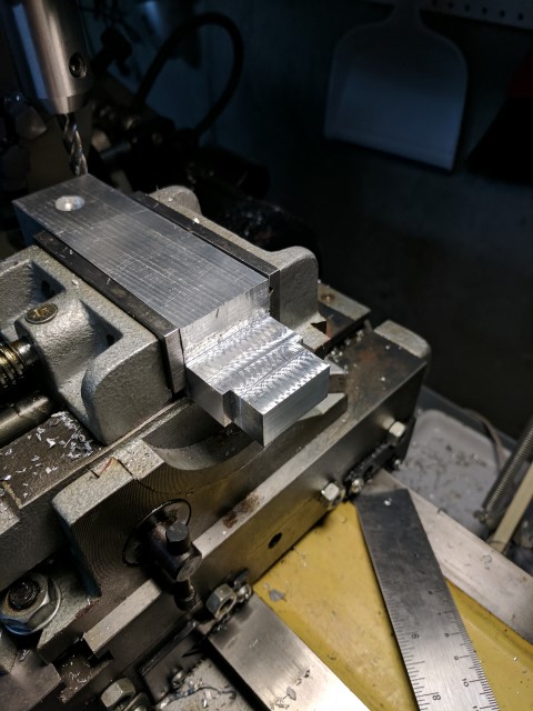 Moving upwards, the two cables attached just below the motor serve to counter the prop’s thrust moment. Holding them in place is another block of aluminum with through-holes and two 8-32 screws on either side which clamp the cables to the retaining block. Originally, M3 screws were used but they couldn’t be tightened enough to prevent the cable from slipping under high loads. If you look closely in the ‘First test’ video, you can see the assembly tweaking over when I apply throttle. There is a convenient drain plug hole which allows a nut and washer to be put inside the kayak and tighten the retaining piece directly against the hull. The mounting plate can be made from a thinner material because it doesn’t have to deal with the bending moment of the prop. Still, I think I will redesign the cable retaining block and pivot pin block to be one piece, with high sidewalls joining the gap that exists where the tension cables exit. The current design works for longitudinal thrust forces, but doesn’t accommodate lateral ones very well. (eg when the kayak is turning).