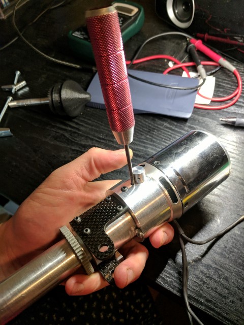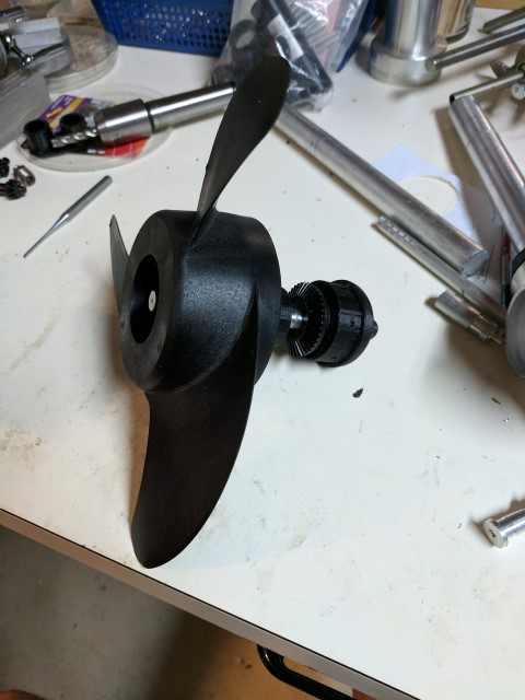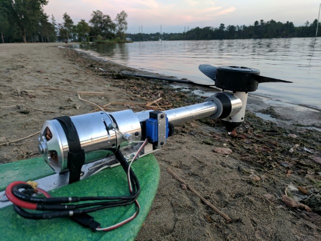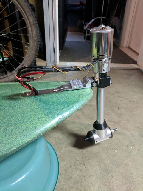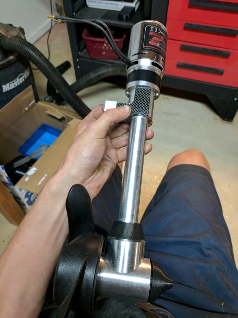 Lastly, the motor is secured with M4 screws which go through the entire length of the collet. I was super lucky that the motor diameter happens to match the 1.5” diameter of the collet, and that the mounting hole locations of the motor match the center of the collet sidewall, giving it a clean appearance. A small hole was drilled about a half inch below the motor, allowing me to stick an allen key in and tighten the drive shaft setscrew. Overall I’m incredibly happy with how the hardware came together and can’t wait to test it on the water!