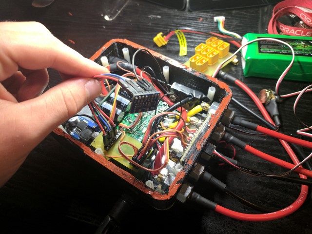 The YEP ESC from Hobbyking was chosen because it’s a shameless clone of the more expensive, German designed YGE ESCs. The open source VESC was also a serious consideration due to it’s telemetry and multiple control options (i2c, canbus, ppm) but in the end the YEP ESC has beefier mosfets and is rated at higher current. 120 amps continuous is overkill, but since I’m using it in a waterproof enclosure I don’t want to run into issues with thermals, so some margin is good.