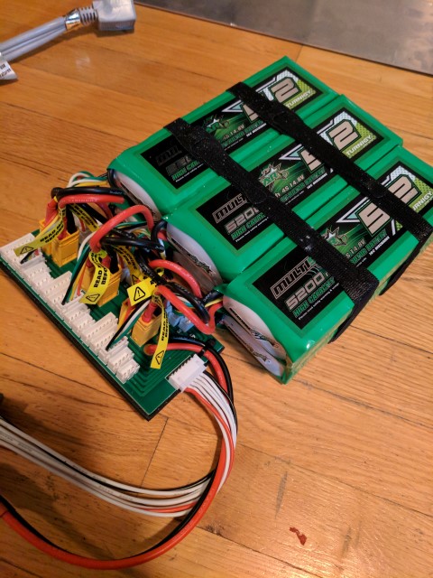 The batteries are wired in 3S2P configuration, giving me 12 cells for a peak voltage of 50.4V and capacity of 10.4Ah or around 500Wh. 500Wh is equivalent to about 70 iPhone 7 batteries, but only 0.5% of a Tesla P100D battery pack. If anything this makes you realize just how massive the batteries in Tesla cars are.