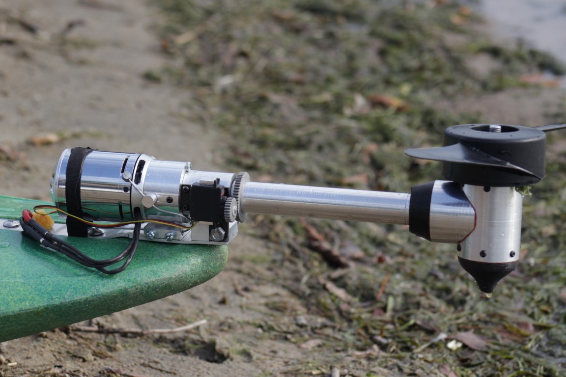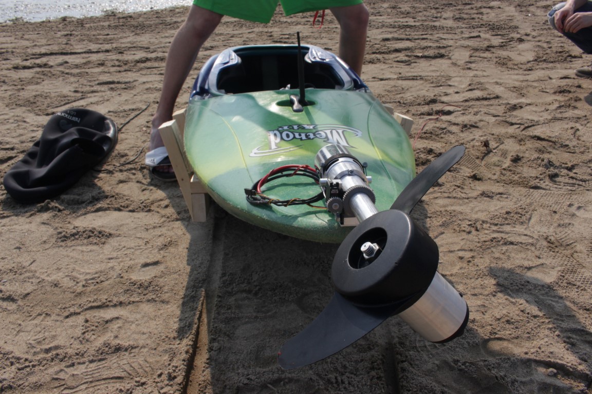 The end of summer was nearing and it was time to finally get the Kayak out on the water. After arriving at the beach and and triple checking the connections, I set out on its maiden voyage. For a couple seconds it looked like everything was going well, and then I raised the throttle and the driveshaft promptly sheared, leaving me paddling back to shore in shame. Still, it was not a total failure. The test had shown that all the electronic systems were working and the telemetry looked good. As for the driveshaft, it failed right where it mated with the bevel gear. The gear had some extra material so I later bored it out and fitted a larger diameter shaft, solving that issue.