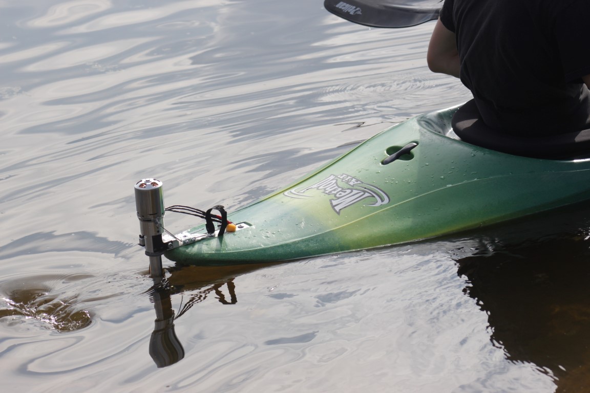 The next few tests all revealed small problems that had to be ironed out. Broken set screws, stripped servo gears, and leaky driveline casings were at fault for the premature endings of several of my tests. On one occasion I brushed my hand on the throttle pot while getting out of the kayak, sending the motor into full throttle while the propeller dug into the sand. This caused some significant damage to the bevel gears and meant that in subsequent tests, I could not push over 500W before the gears started to slip. (Previously I had seen numbers up 2500W in telemetry) This is the current state of the kayak until I receive new bevel gears in the mail. On the bright side, this has allowed me to do lots of testing at low power levels. It seems that the kayak is most at home cruising around 300W output power. This allows for a speed similar to the row boats which frequent the section of the Rideau canal on which I test. Most surprisingly, I can get a solid 1 ½ to 2 hours of run time like this. If I slow down to the crawling speed of a regular canoe or kayaker, 3+ hours of runtime is possible. Overall I am quite satisfied with this but can’t wait to get the new gears so I can test what it’s like when the motor is pushing 3.5 HP.