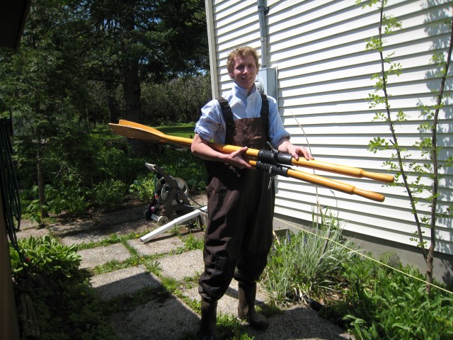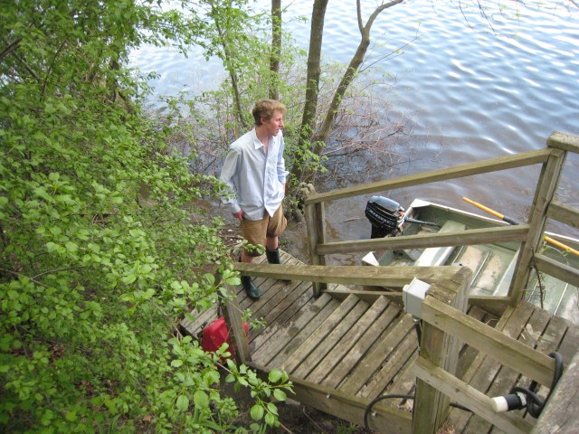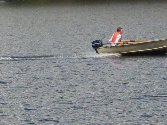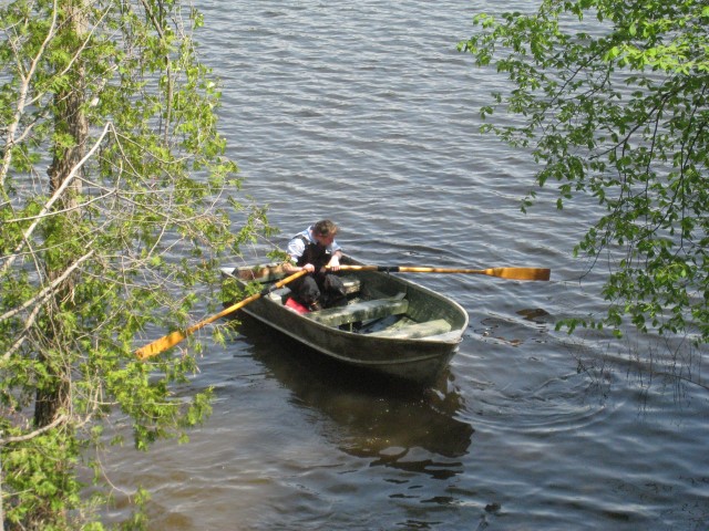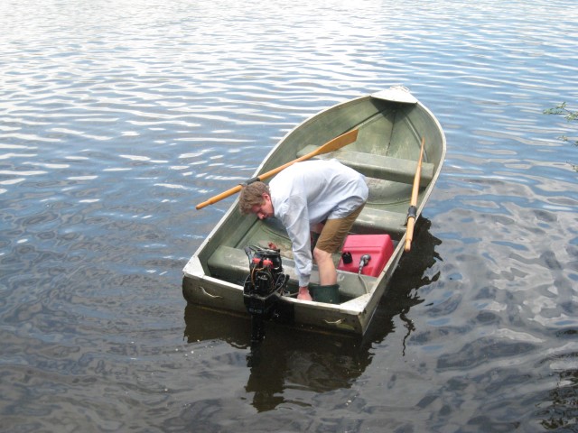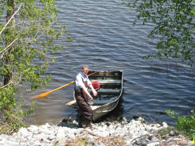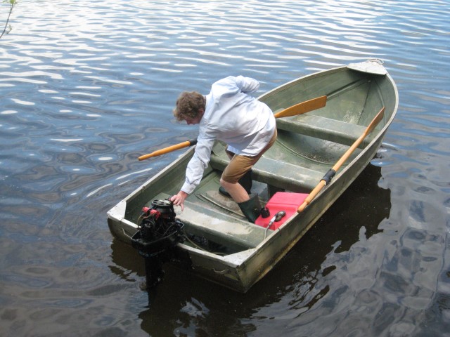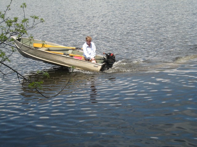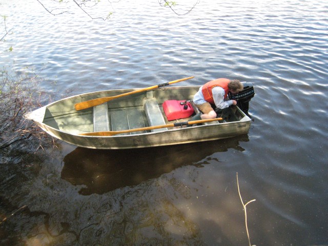 At this point it was the beginning of May and I was hoping to get the boat on the water as soon as possible. The hull was still at my grandparents’ cottage where it had been chained to a tree on the shoreline for years. Unfortunately, the spring melt meant it was still under 5 feet of water. I visited the cottage several times throughout May, hoping to get to the hull. When I could see the tip of it poking out of the water, I got into waders and pulled it out. Amazingly, the hull was not damaged after all these years. Grandpa watched on as I strapped on the engine and proceeded to spend half an hour tring to get it to start. Finally the engine kicked into life and I was able to enjoy a victory boat ride.